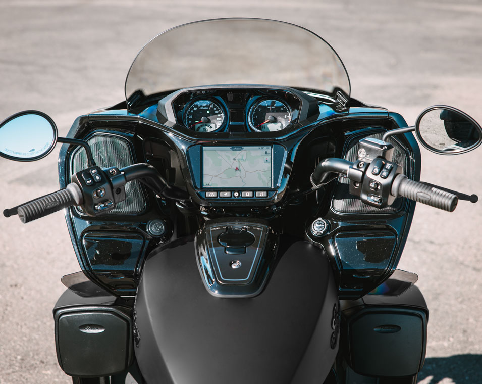 Remote-Locking Hard Saddlebags and Trunk, Power Adjustable Windshield, Heated Grips, Keyless Ignition, Adjustable Fairing Vents, USB Charger, and Tyre Pressure Monitoring System (TPMS)
